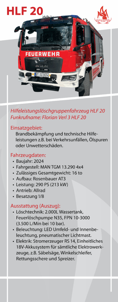 - 01.01.2024: Die Löschgruppe trennt sich organisatorisch vom Löschzug Verl und läuft fortan eigenständig weiter.